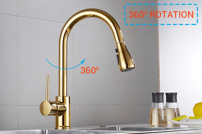 Кухонная раковина выдвижной золотой кран палубное крепление душевая Колонка водопроводный кран медный смеситель Современный дизайн Роскошные вращающиеся смесители
