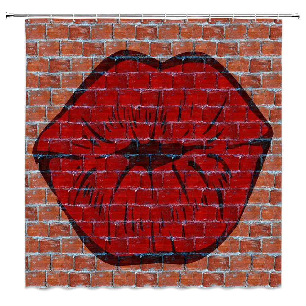 Personality Creative Red Lips Red Brick Shower Curtain Polyester Fabric Bathroom Fantastic Decorations Bath Curtains