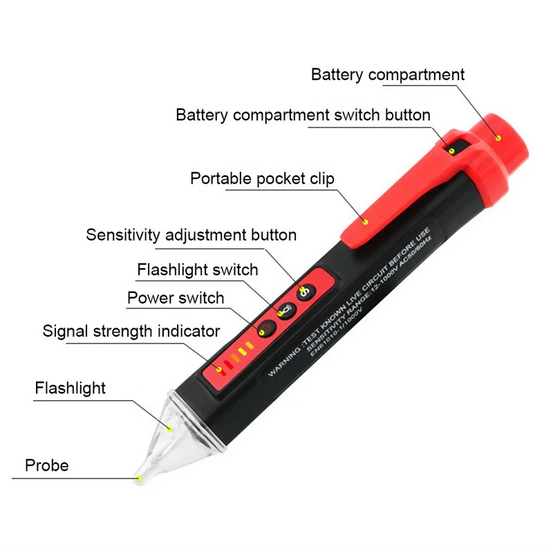-Легко читать-датчик NVC датчика может определить напряжение и дает звук и светильник, простой и четкий.