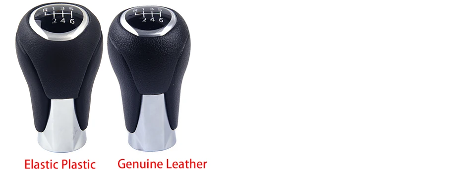 Condition:100% new Color:Black&Silver Main Material: Plastic Choice: Elastic Plastic / Genuine Leather Size:approx. 8.6x5.1cm(3.4x2inch)(LxW) Item included:1 x 6 Speed Manual Transmission Gear Shift Knob Compatible With: