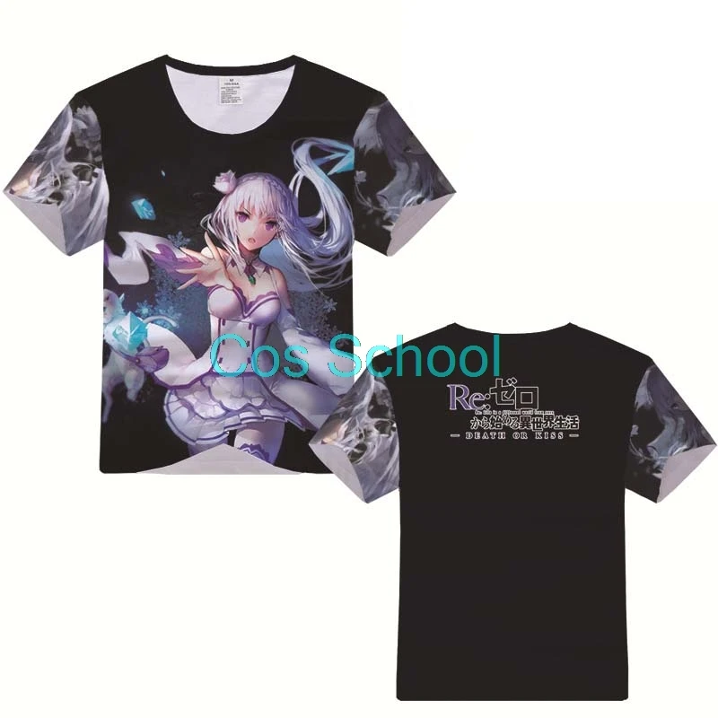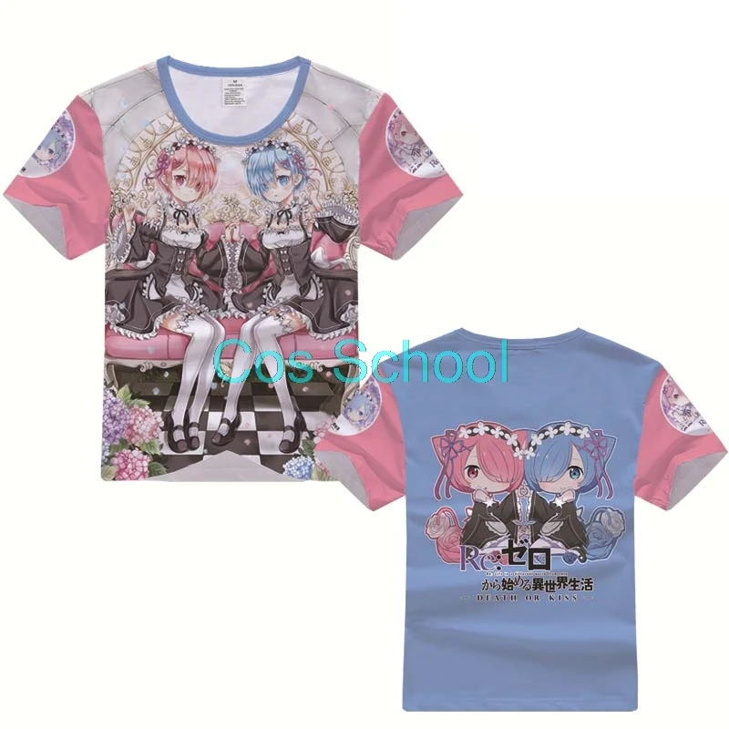Аниме рам и рем футболка для косплея Re: Zero Starting Life in anthorn World Emilia Costumes Rem футболка с короткими рукавами летние топы