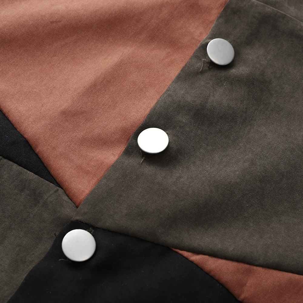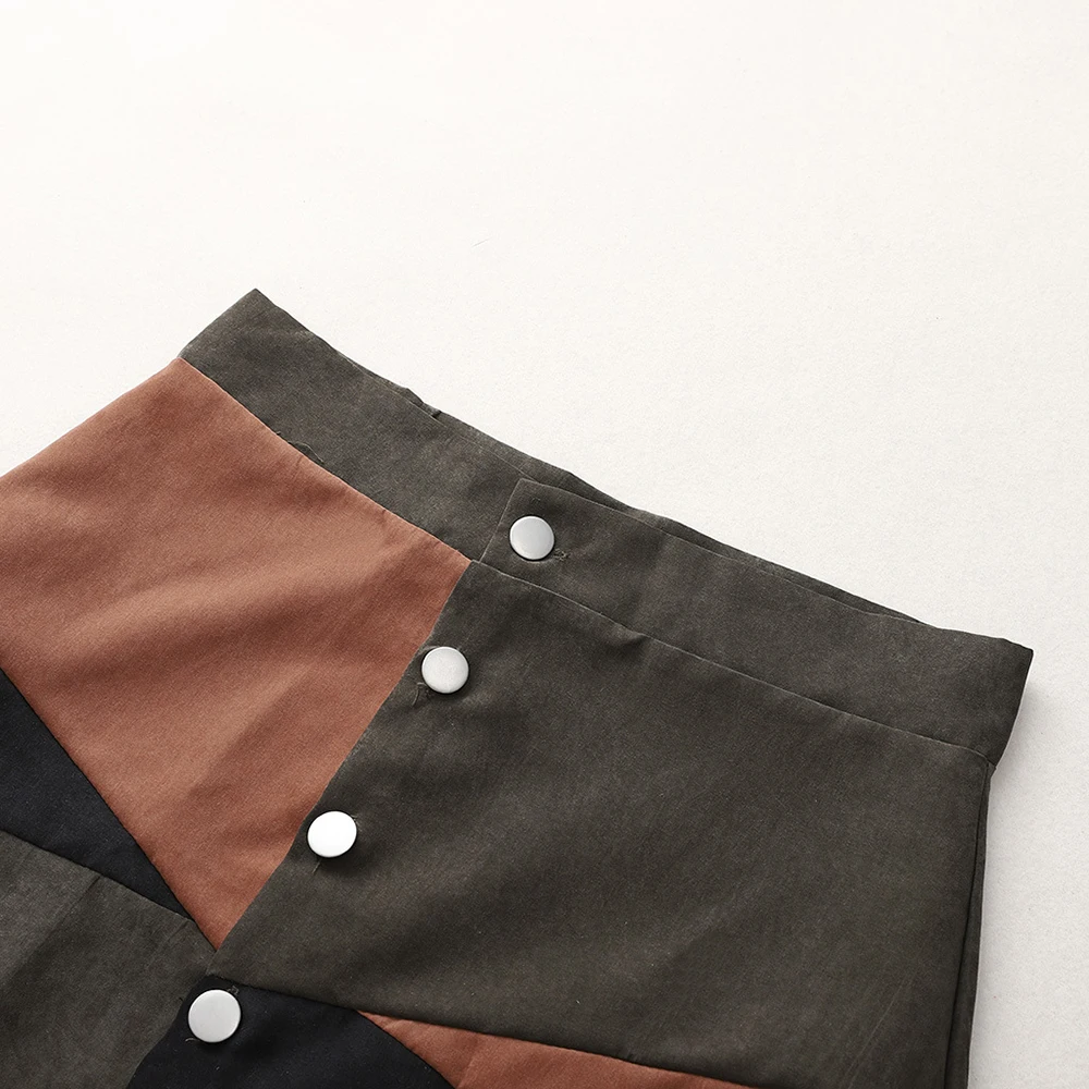 Женская Лоскутная цветная юбка трапециевидной формы с пуговицами и высокой талией, повседневные модные элегантные тонкие плотные мини-платья в Корейском стиле