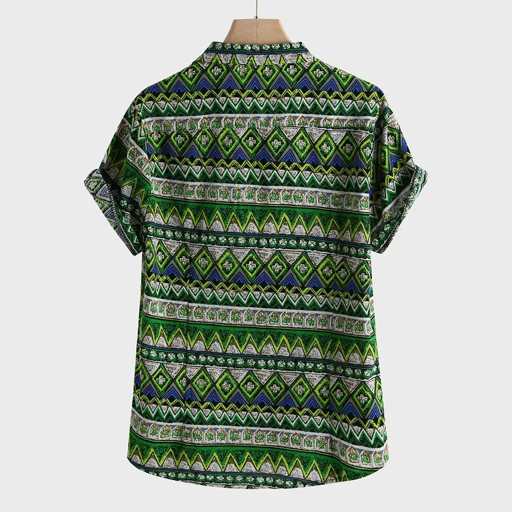Модная мужская Гавайская Свободная Повседневная футболка с короткими рукавами и пуговицами