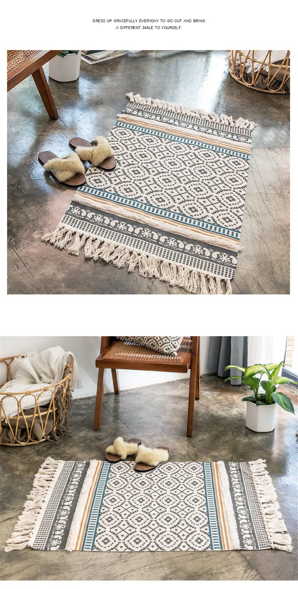 Namenordinic разноцветный ковер с кисточками ручной работы вязаный ковер из хлопка и льна ручной работы водопоглощающий коврик для ванной комнаты Материал: хлопок и лен Область применения: гостиная, спальня, прихожая, кабинет, столовая, ковер Количество: 1 шт. Посылка: полиэтиленовый пакет Преимущество: мягкое поглощение воды