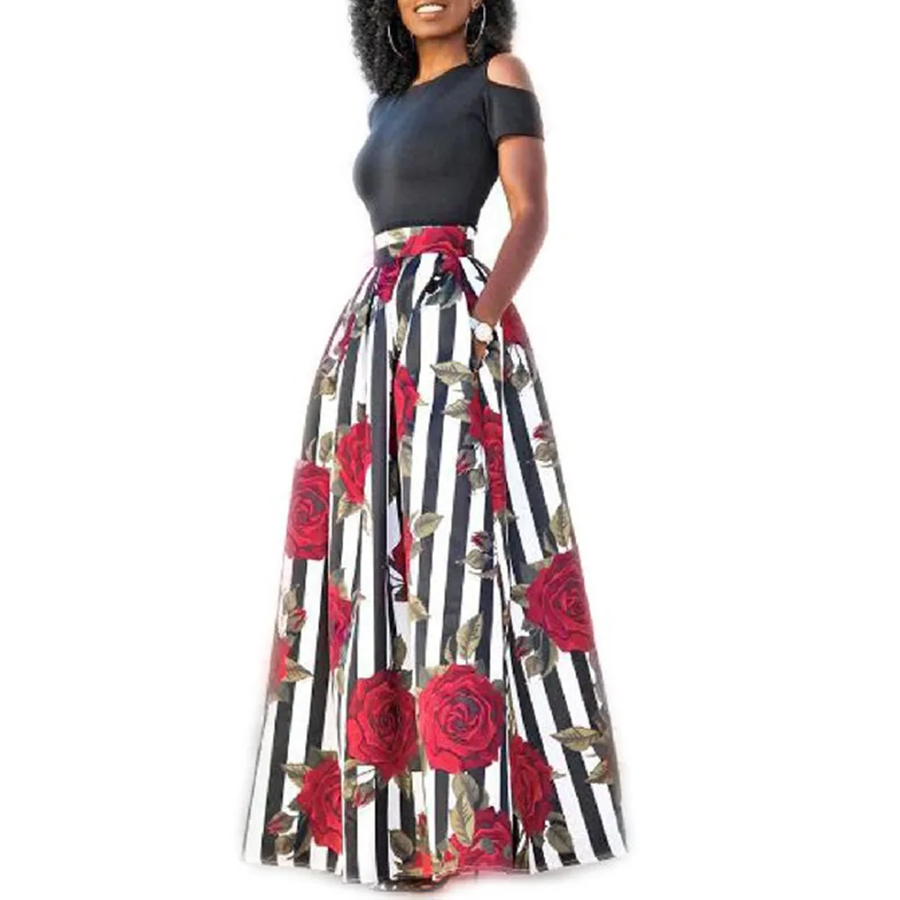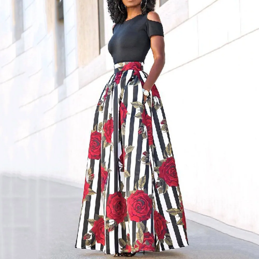 Женское платье с цветочным принтом в африканском стиле, Элегантное Длинное Красное лоскутное платье с высокой талией, сексуальное облегающее Макси-платье русалки для вечеринки, большие размеры 2020