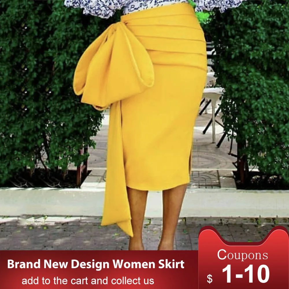Повседневная Асимметричная Женская юбка с высокой талией, Лоскутная юбка до середины икры с бантом, женская одежда, 2020, модная новинка, плюс размер 2XL