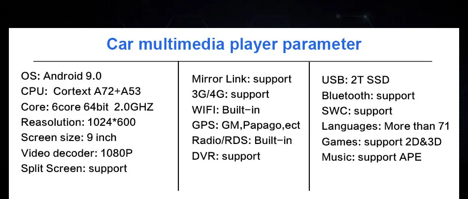 Функция сети Поддержка 3G/4G dongle и WIFI, вы можете скачать И используйте программное обеспечение Android