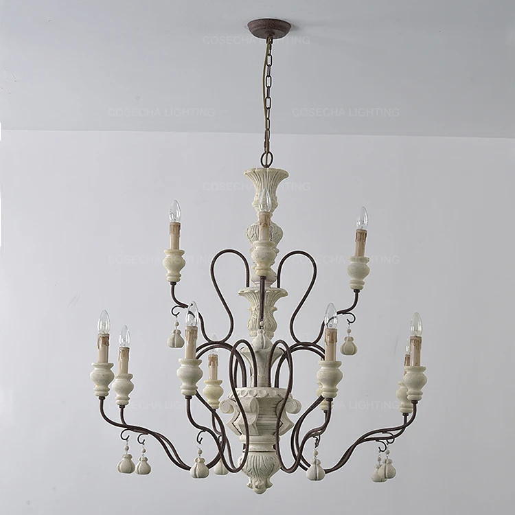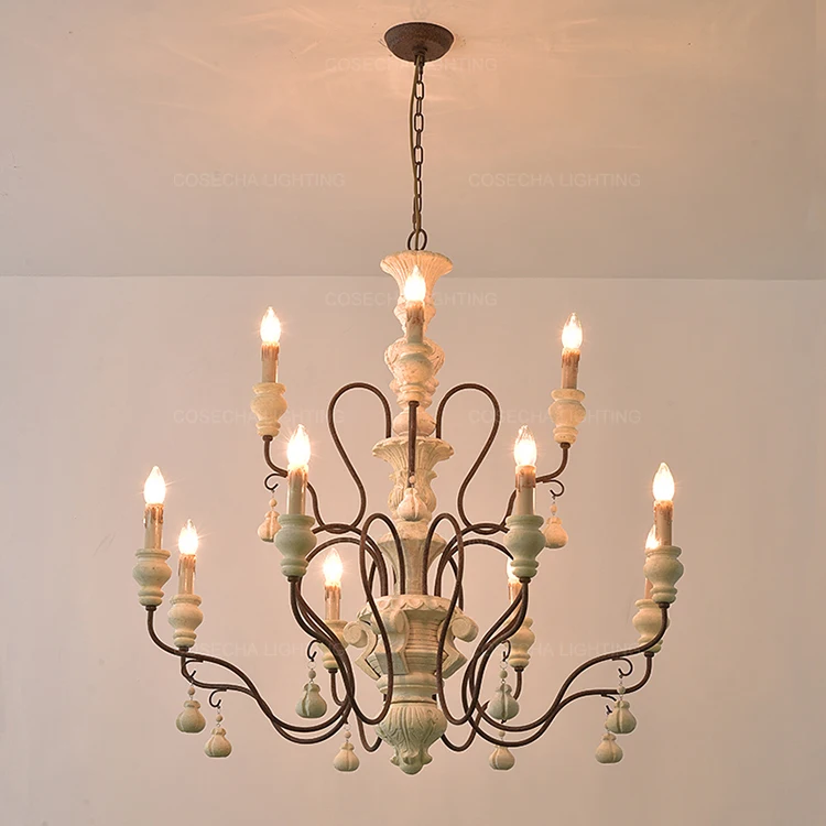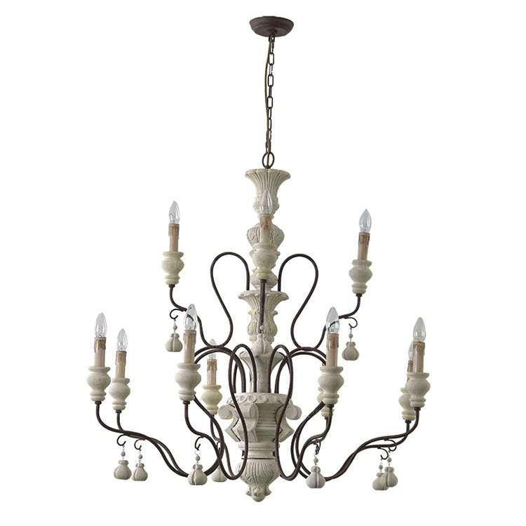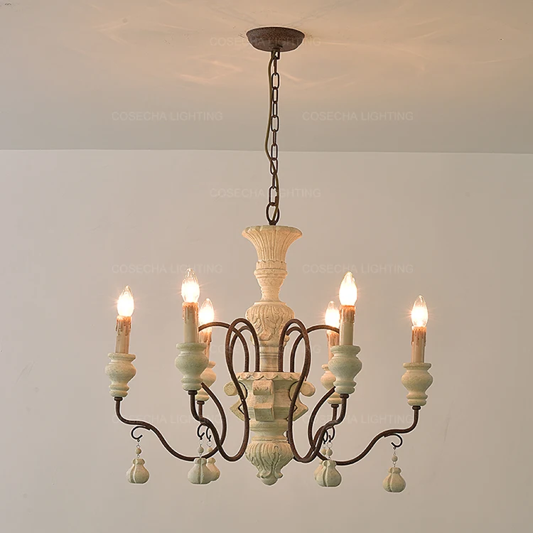 Большая церковная люстра в стиле ретро, деревянное освещение, французская американская лампа, антикварная лампа для гостиной, фойе, виллы, вестибюля