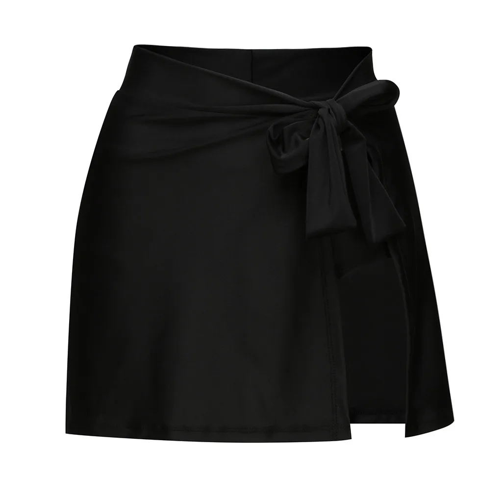 Женская летняя пляжная одежда, сексуальное однотонное бикини со шнуровкой, низ с бантом, боковая юбка для плавания с короткой женской черной купальной одеждой для 2020