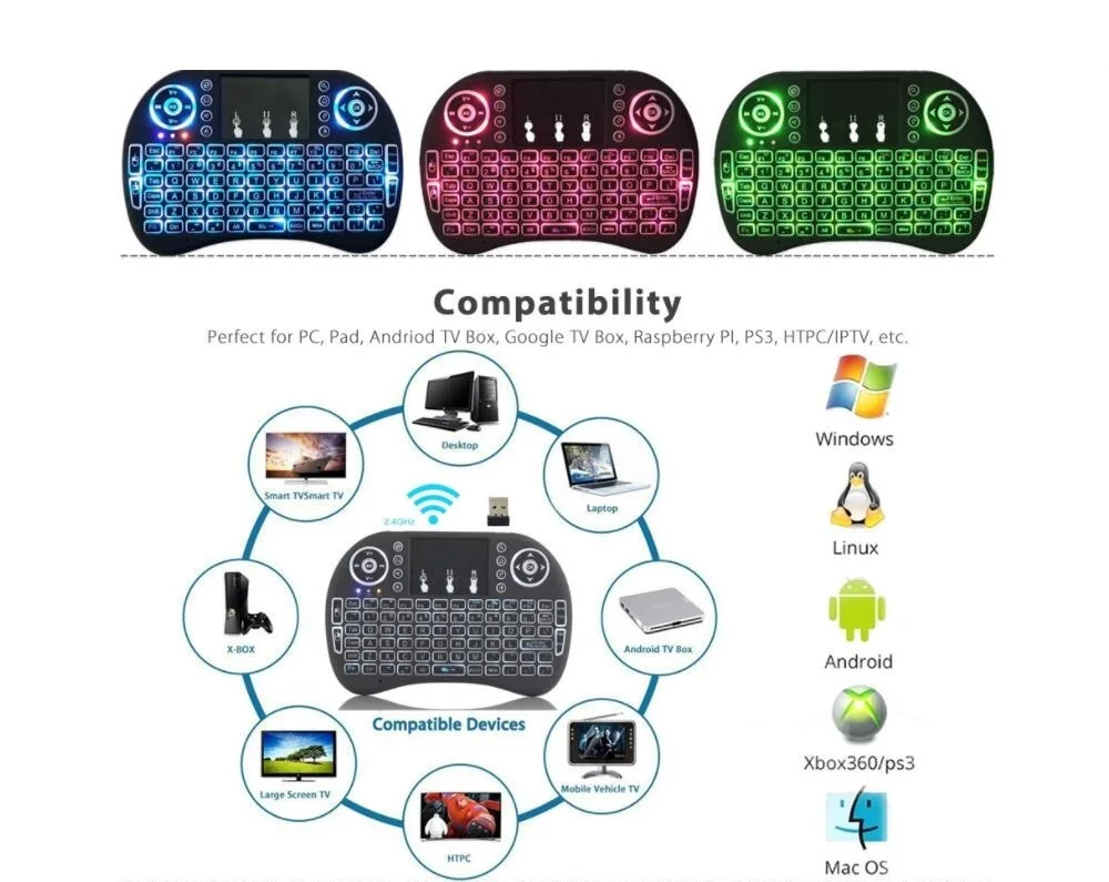 7 красочные мини-клавиатура i8 2,4 ГГц Беспроводной воздушная Летающая Мышь мульти-Язык клавиатура для Android ТВ коробка/ПК/XBOX/ PS3/ноутбук