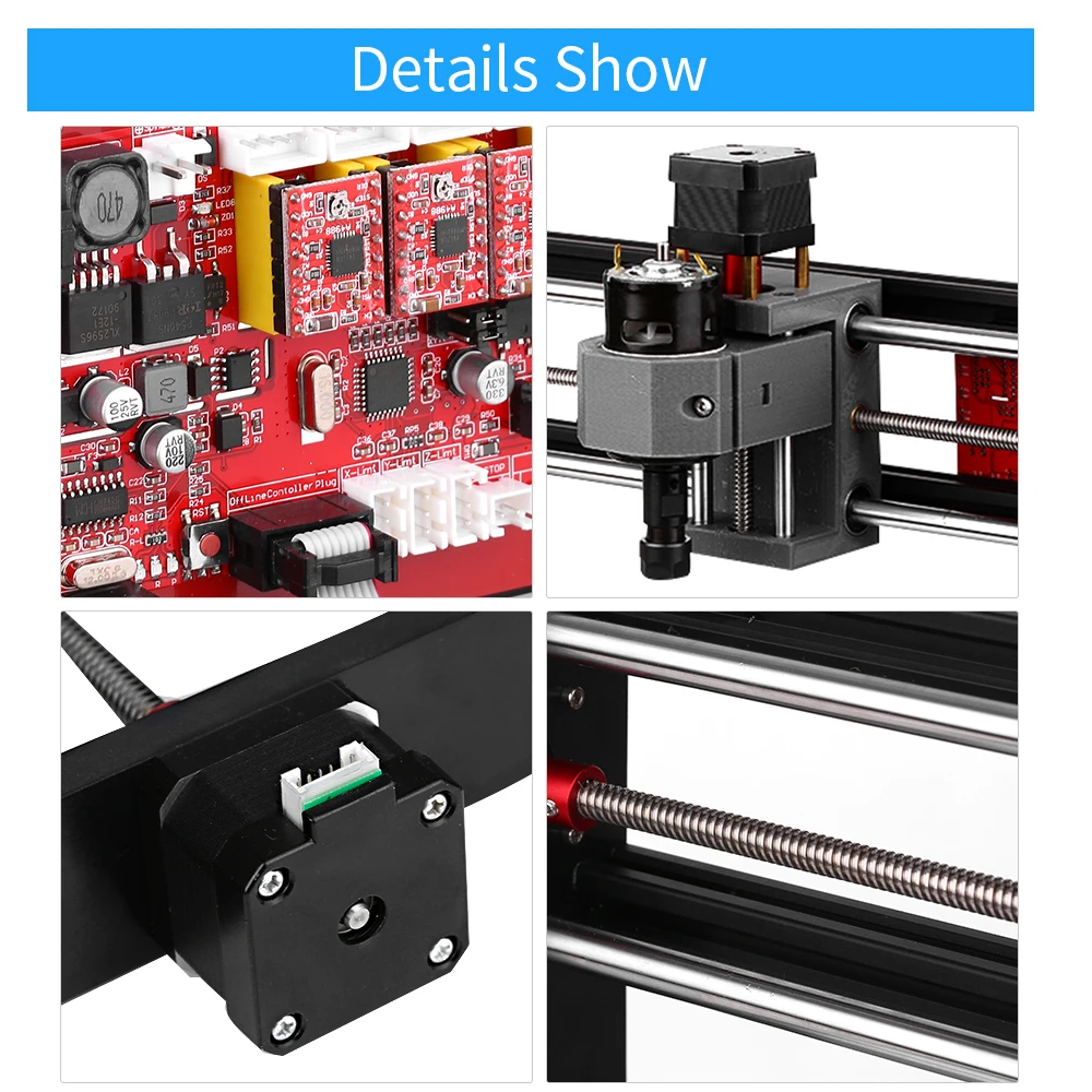 Этот DIY гравировальный станок с ЧПУ специально предназначен для DIY веселья, учебы и исследований, давая вам Экстремальный портативный опыт. Этот гравировальный станок с ЧПУ имеет функцию гравировки, резьбы и фрезерования. Эта машина для резьбы может быть выгравирована на пластик, дерево, акрил, ПВХ, pcb, дерево или аналогичный материал. Сверло не может гравировать твердый металл, нефрит или другие твердые материалы.