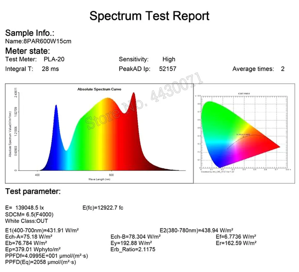Спектр: 3000K + 660nm / 3500K + 660nm / 4000K + 660nm