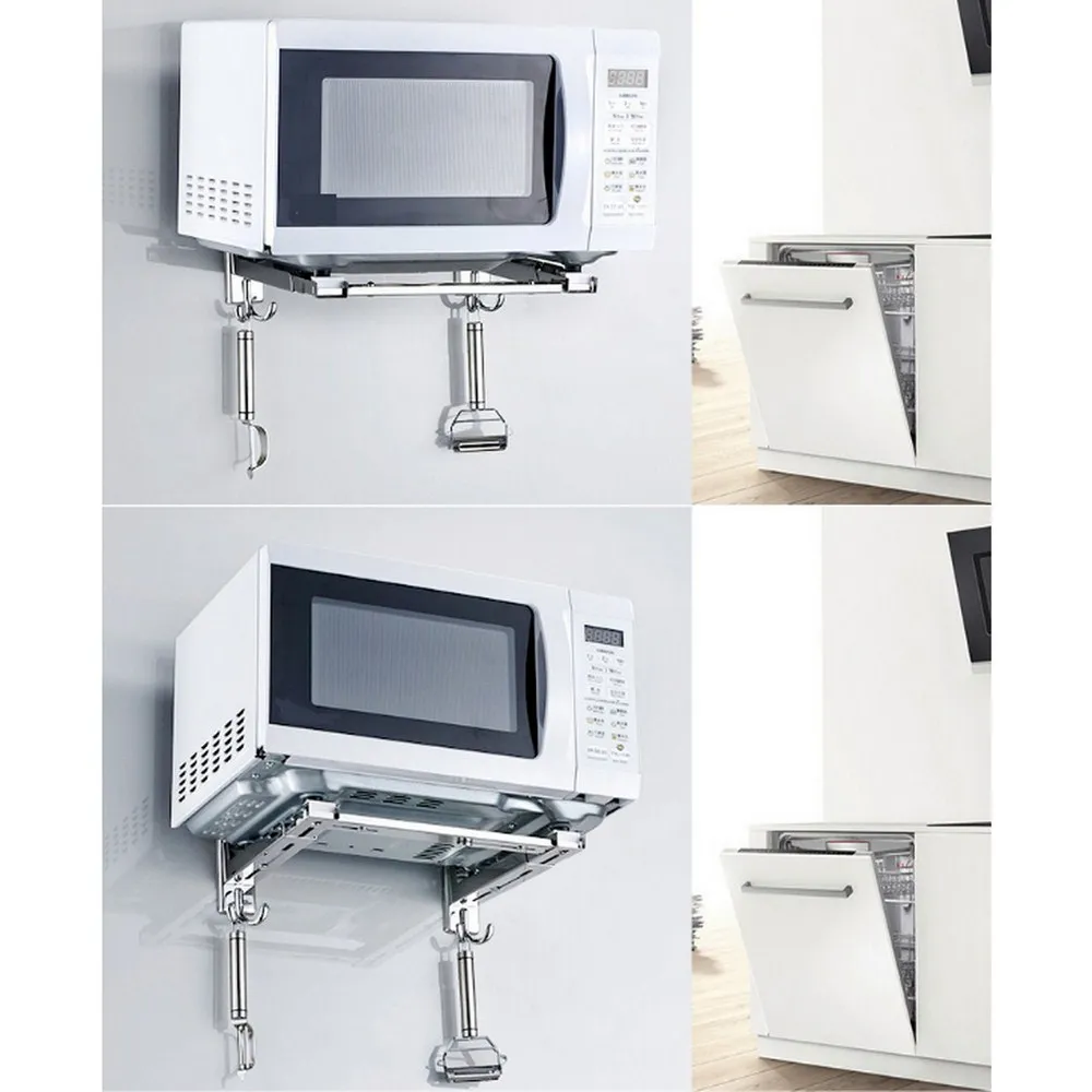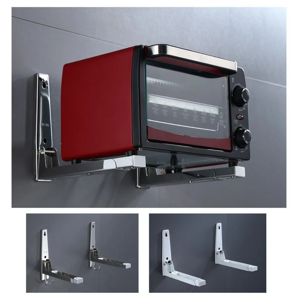 Кухонный кронштейн из нержавеющей стали для микроволновой печи, крепкий Складной настенный стеллаж, Полка на Рождество, простая установка
