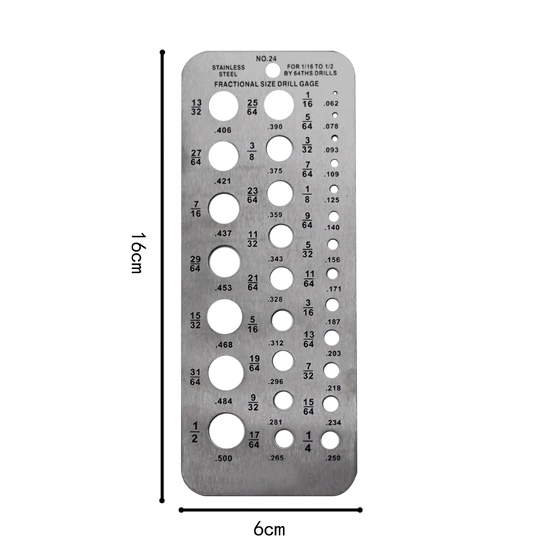Эквиваленты от 1/16 дюйма до 1/2 дюйма на 1/64 дюйма.