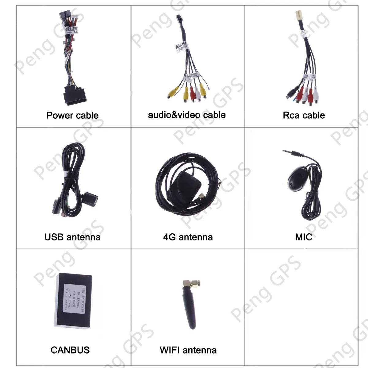 Наш продукт поставляется с GPS антенной, gps-картой для вашей страны, usb-адаптером, аудио и видео входным кабелем, кабелем питания... и т. д., все наборы для установки будут в посылка.