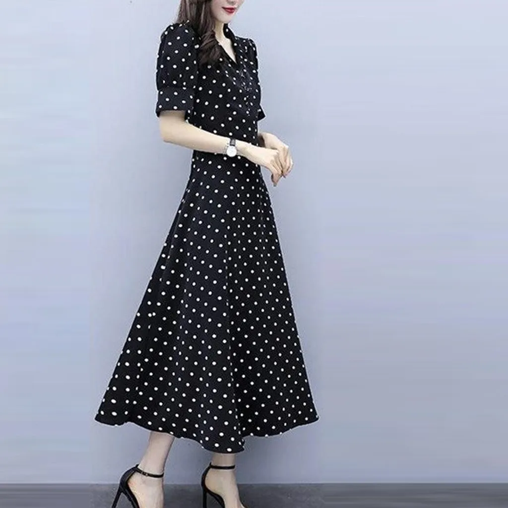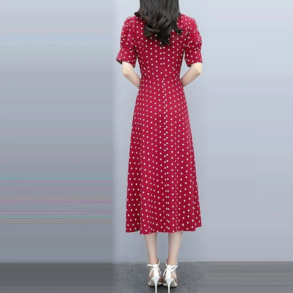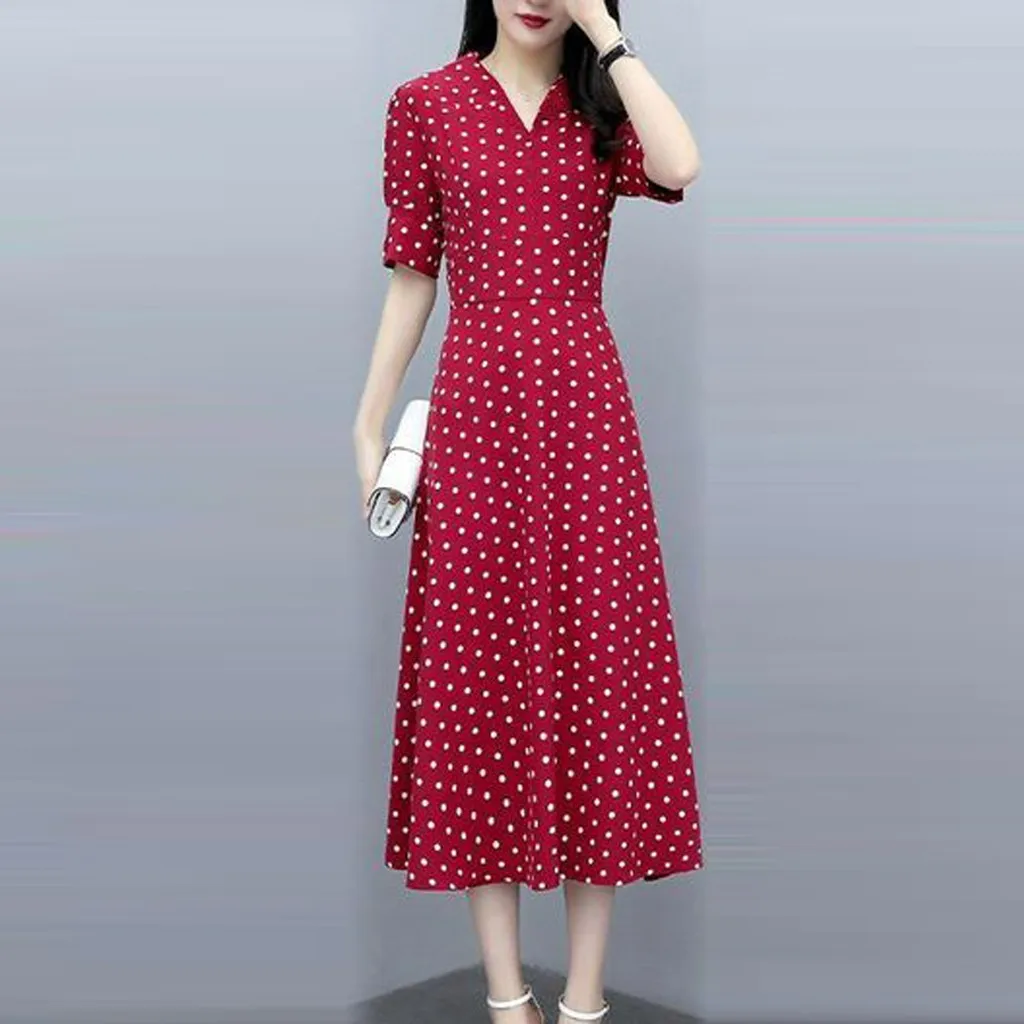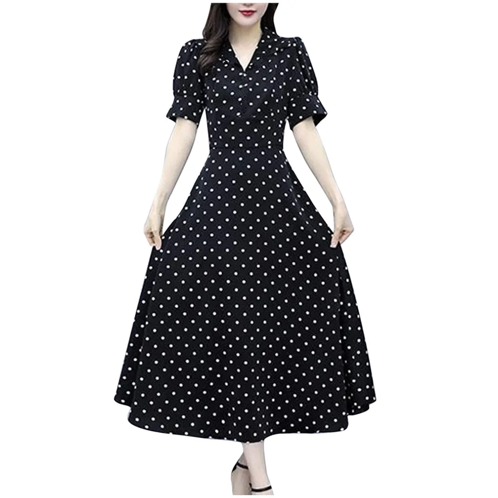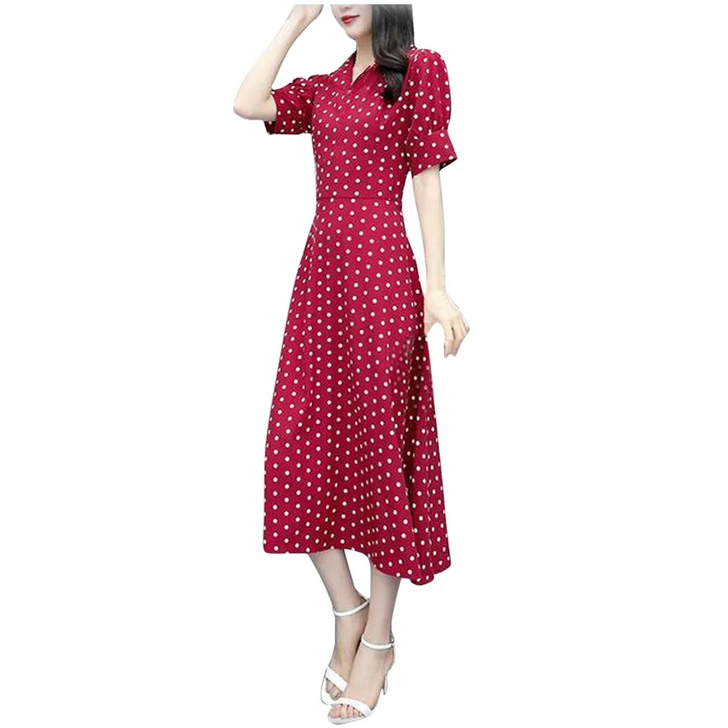 Женское модное длинное платье в стиле ретро с v-образным вырезом и коротким рукавом