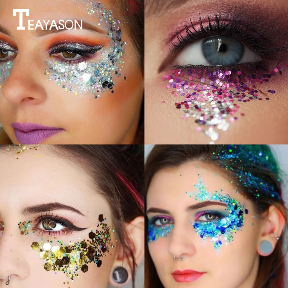 Украшения для лица, для тела, для глаз, для лица, блестки, гель для лица русалки, желе, блестящее лицо, голографический, не сужающийся книзу, блестящее сверло, украшение для праздника