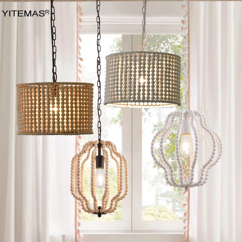 Один винтажный подвесной светильник из белого дерева, 1 светильник, небольшой ретро скандинавский подвесной светильник для спальни, кухни, столовой, подвесной светильник