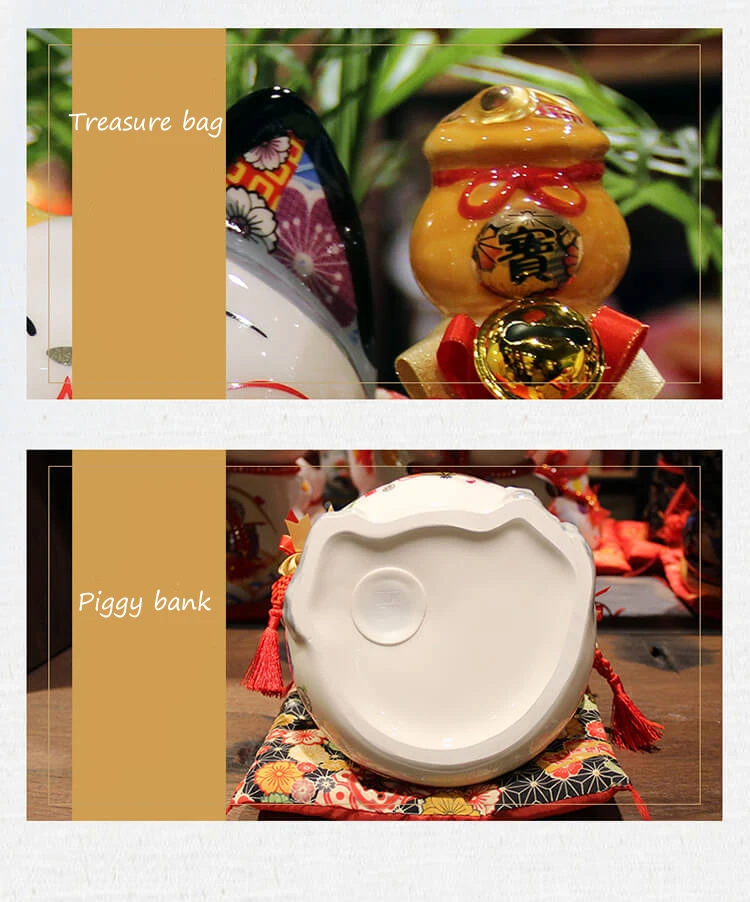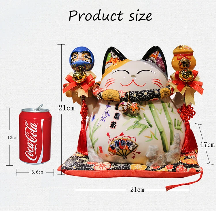 Материал: Керамика Размер: около 21 см/8 дюймов в длину. Тонкая ручная роспись. Может использоваться как Копилка/копилка, поставляется с слотом для монет и пробкой внизу. Посылка включает в себя: 1 шт. lucky cat + 1 Подушка, с подарочной коробкой.