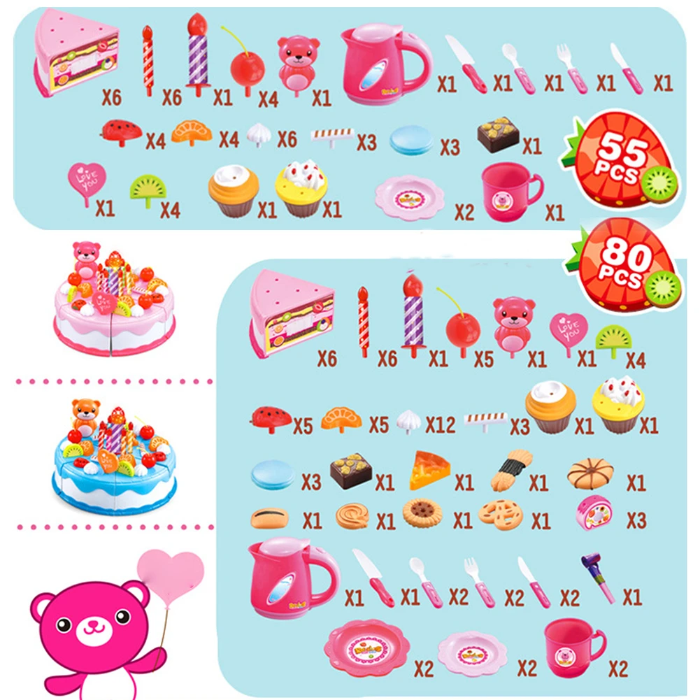 55/80 шт, детские игрушки для ролевых игр, Детские вечерние игрушки для торта на день рождения, имитация фруктов, комплект для еды, игрушка для раннего образования