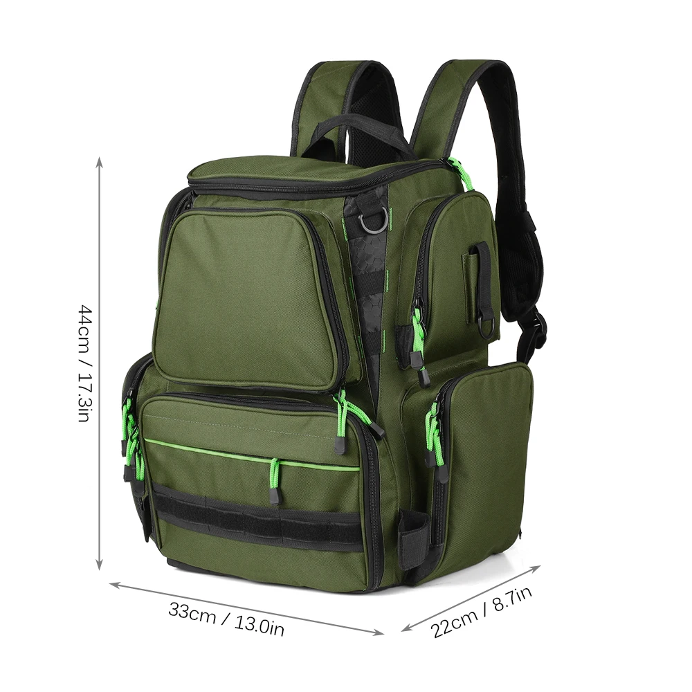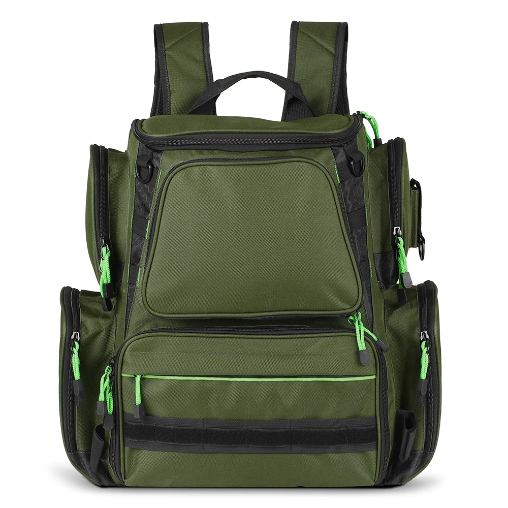 Этот рыболовный рюкзак имеет много отсеков, чтобы ваши рыболовные приманки и принадлежности были хорошо организованы. Это водостойкий и устойчивый к царапинам, отличный рыболовный мешок для всех рыбаков.