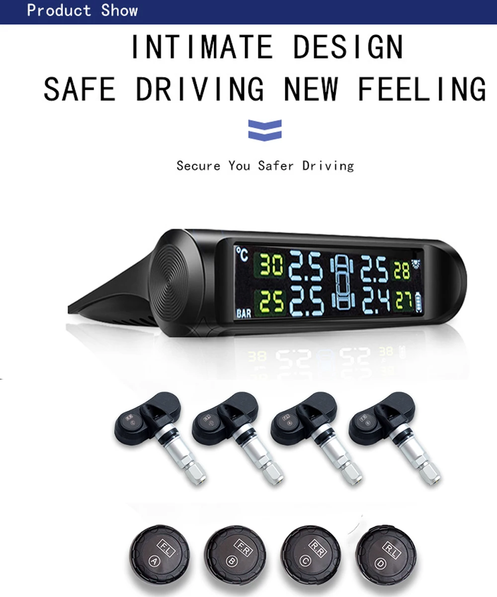 Голосовых сообщений ЖК-дисплей шин Давление контроль сигнала тревоги Системы шины Температура Предупреждение Digiral салона автомобиля TMPS USB & Солнечный Мощность