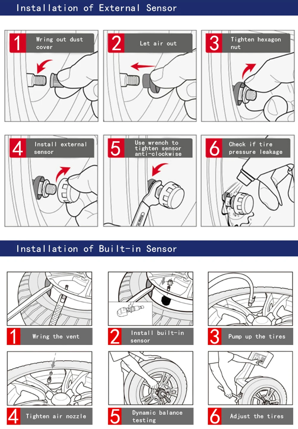 О: мы предлагаем установить Встроенные датчики профессиональным автомобильным центром; Внешняя установка может прочитать нашу страницу и руководство для справки.