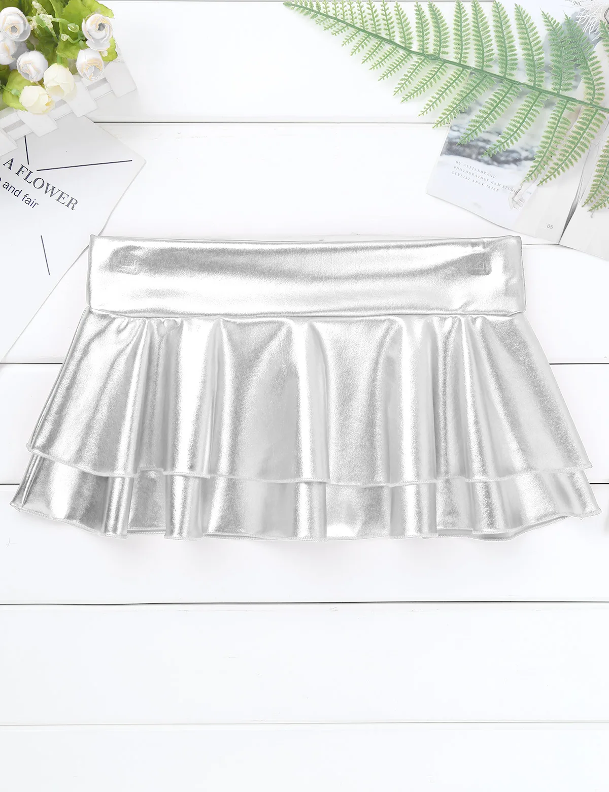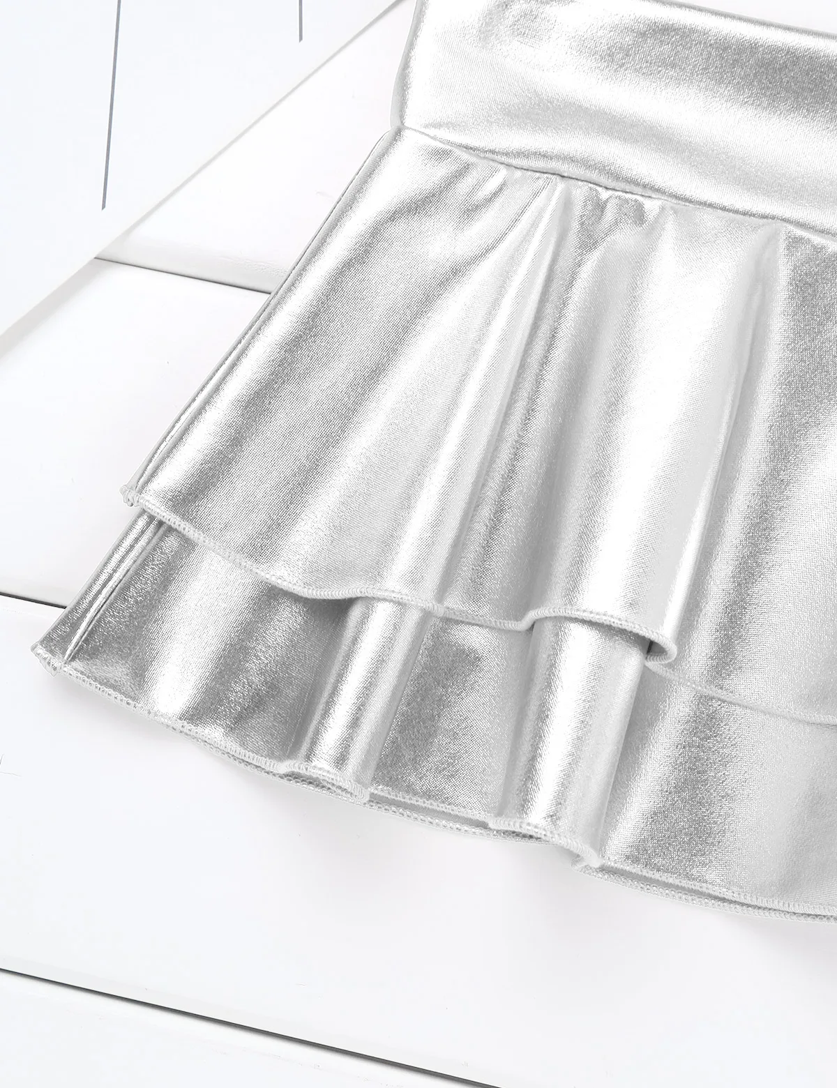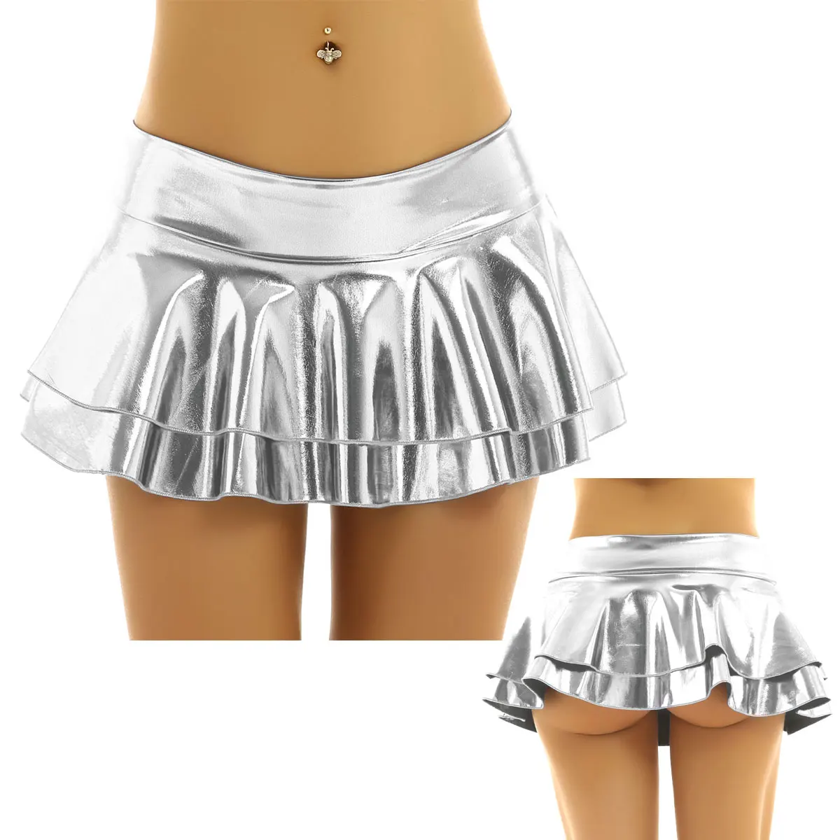 Женская модная блестящая металлическая мини-юбка с оборками, простая, но привлекающая внимание вещь.