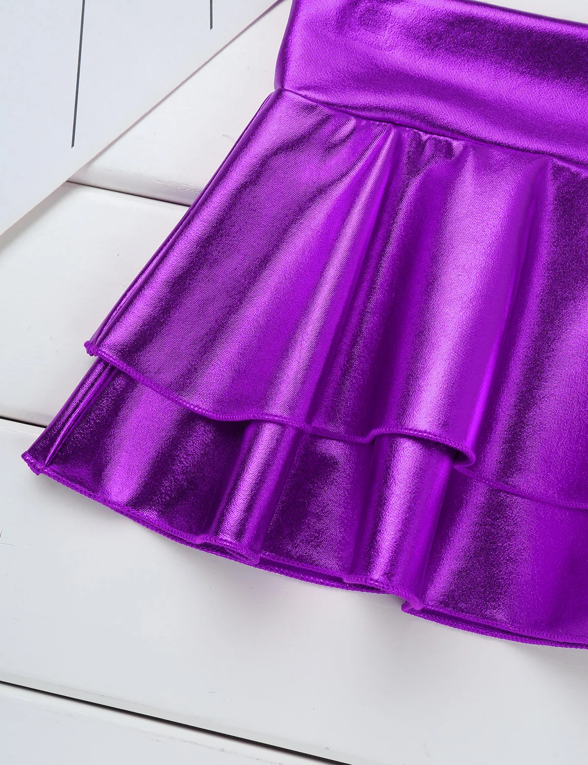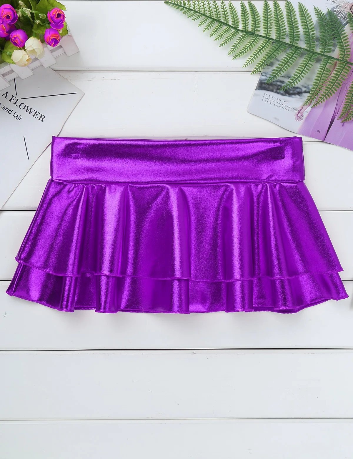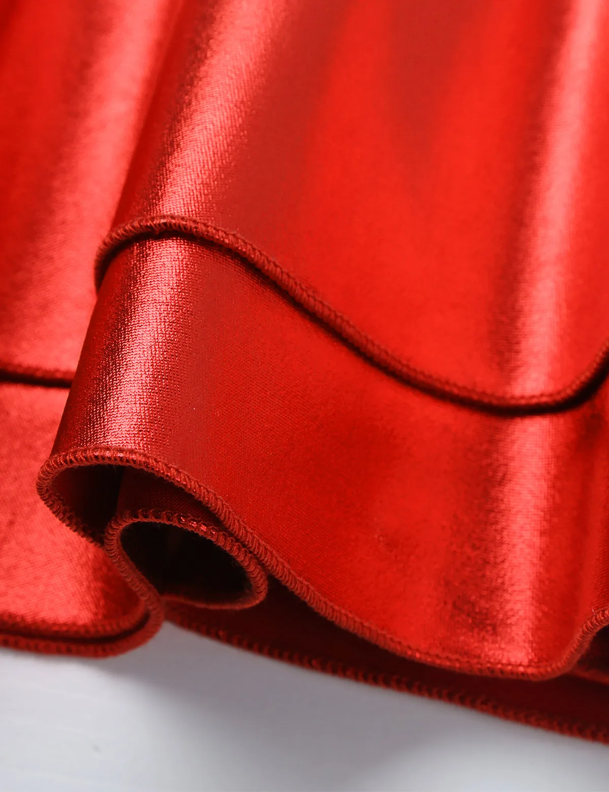 Женская модная блестящая металлическая мини-юбка с оборками, простая, но привлекающая внимание вещь.