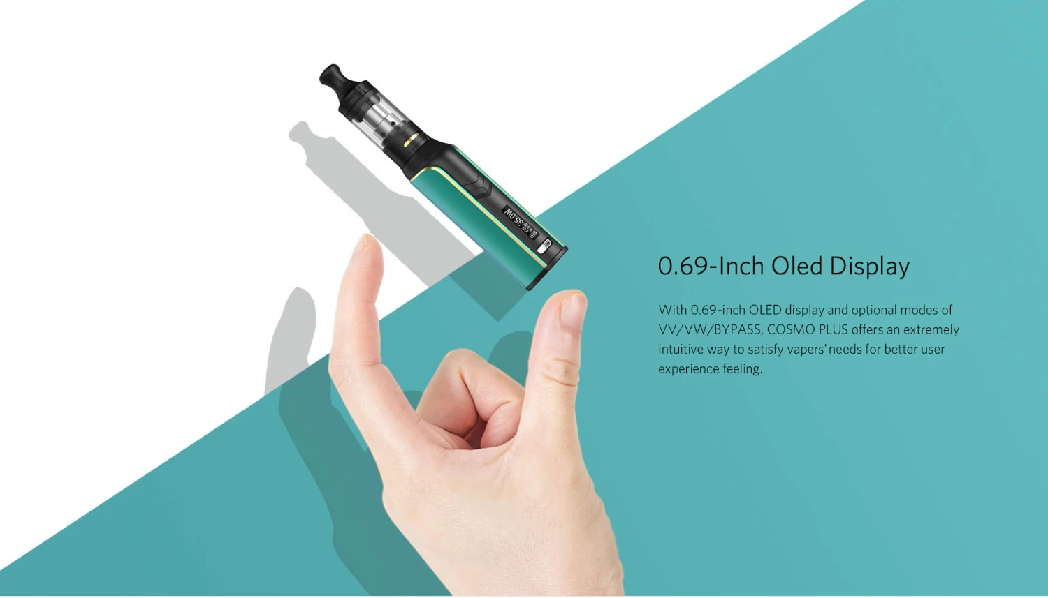 Благодаря эстетической интегрированной форме тела с обтекаемыми изгибами и изысканной специальной отделкой, COSMO PLUS сочетает внешнее качество и внутреннее очарование в компактном целом. Он освобождает от предыдущего дизайна с 0,69 дюймовым oled-дисплеем, интеллектуальным цветовым соединением и вилочными спиралями, чтобы дать лучший опыт вейпинга чрезвычайно интуитивно понятным и удобным способом.