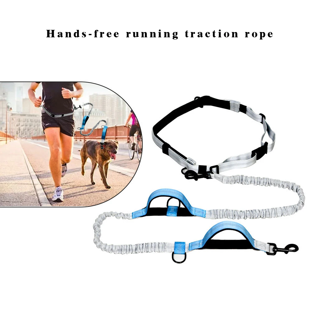 1set Hands-Free Running Waist Belt Dog Jogging Pet Collar Leash Set Adjustable Reflective Safety Nylon Strap Walk Hiking Buffer Rope for Small Medium Large Dogs