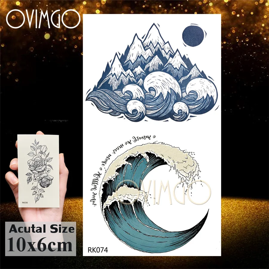 Цветок Луны с геометрическими фигурами, треугольниками, временные татуировки для мужчин женский боди-арт руку назад тату Водонепроницаемый поддельные 3D стикер татуировки