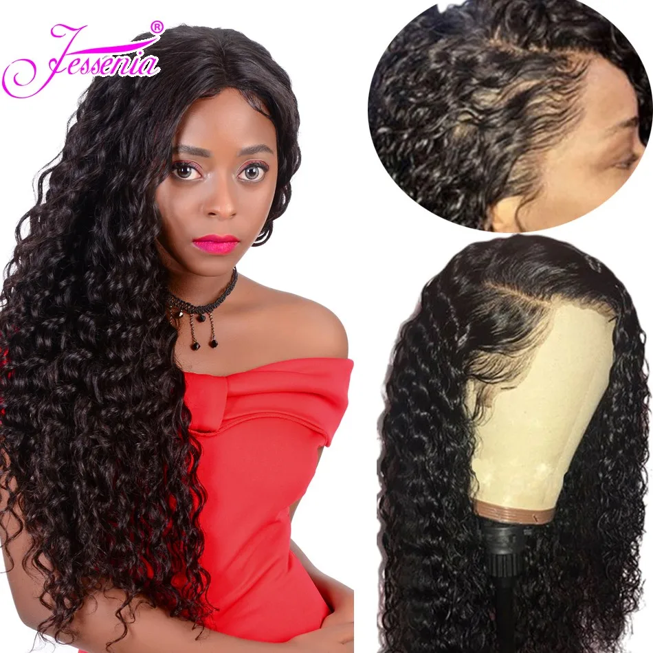 Jessenia 13X4 кудрявые человеческие волосы, парик фронта шнурка, бразильские волосы, парик шнурка, натуральный цвет, волосы Remy, парик 10-24 дюйма
