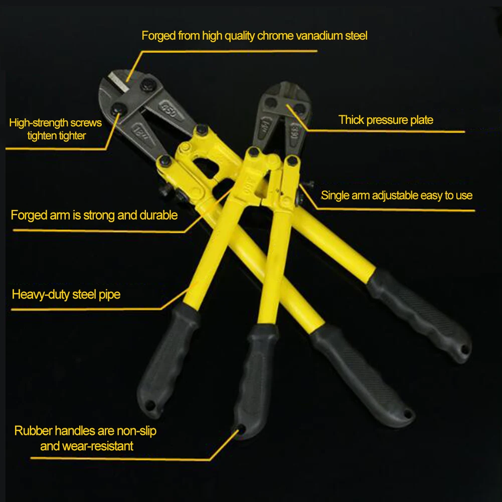 Их можно использовать для резки навесных замков, цепей, колючей проволоки, резьбовых стержней, толстых стальных проводов, заборов и многих других металлов.