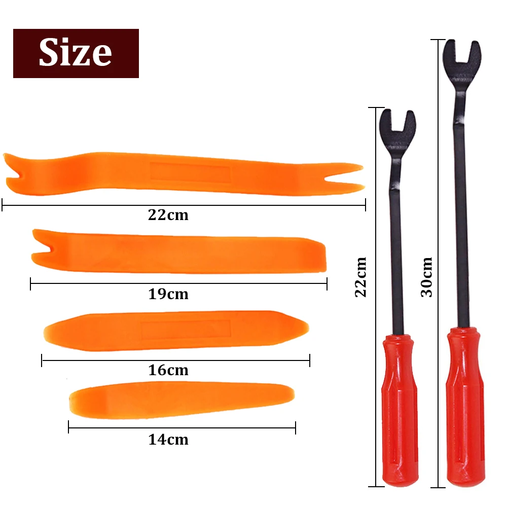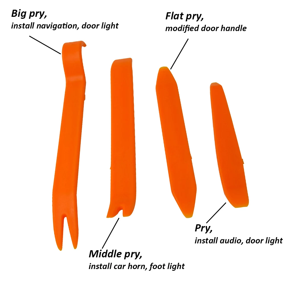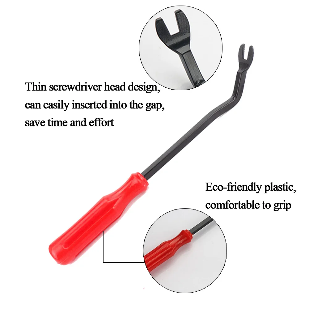 • Изготовлен из прочного пластика и металла, легко удаляет отделку, литье, дверные панели и панели приборов.