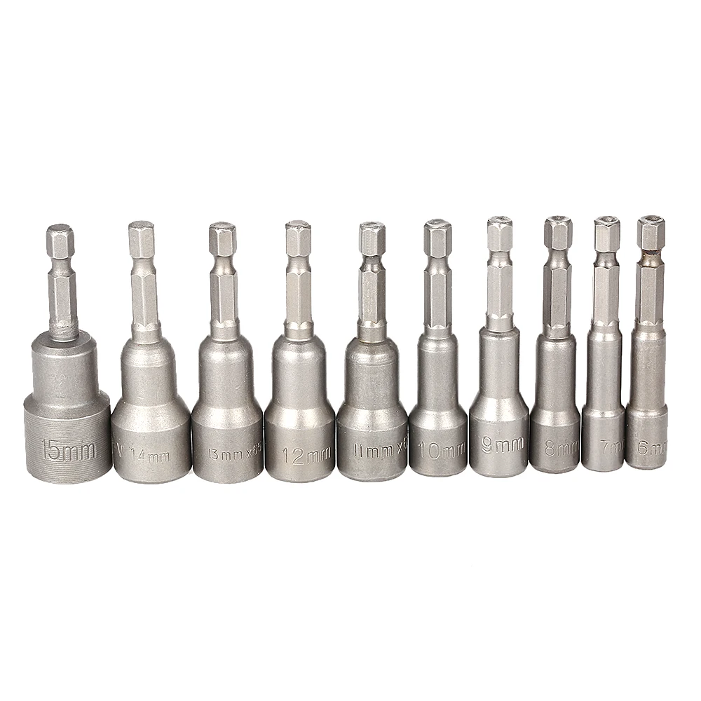 10 шт. 6-15 мм пневматическая мощная магнитная гайка набор сверл 65 мм 1/4 "шестигранный хвостовик метрический торцевой гаечный ключ Винт