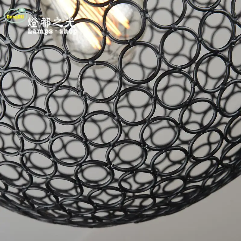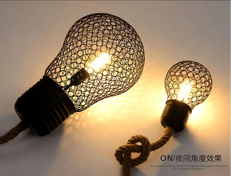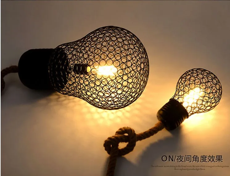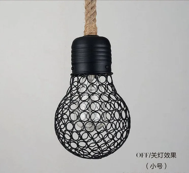1. Напряжение: ac220в 2. Цвет абажура: черный цвет 3. Яркость или нет: нет 4. Тип источника света: лампы накаливания или светодиодные лампы 5. Основные материалы: веревка + железо 6. Лампочки включены: нет имени: подвесные светильники Размер: 15 см * 22 см (маленький) 28 см * 42 см (большой) Цвет: черный Полезно: cofee /bar/гостиная/освещение столовой Материал: веревка и железо
