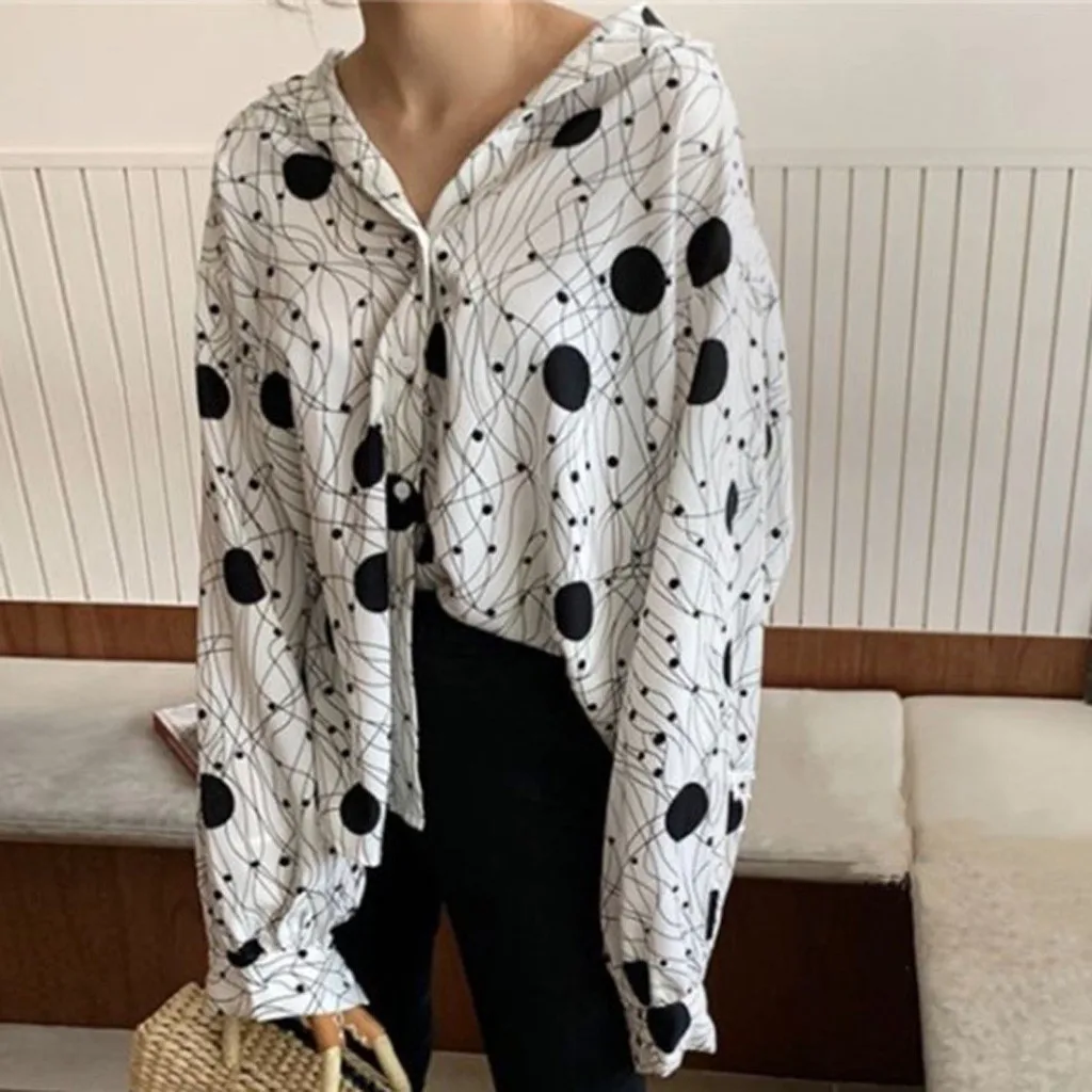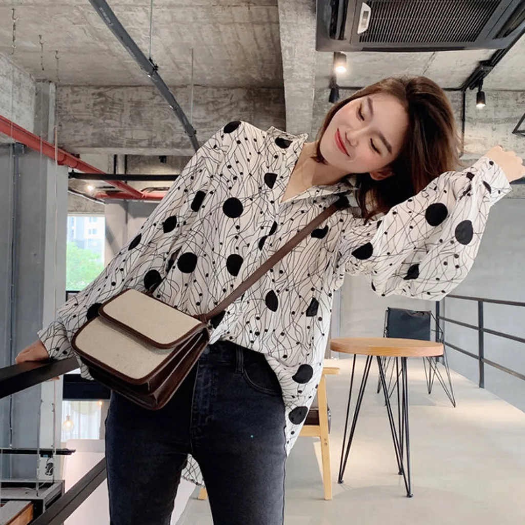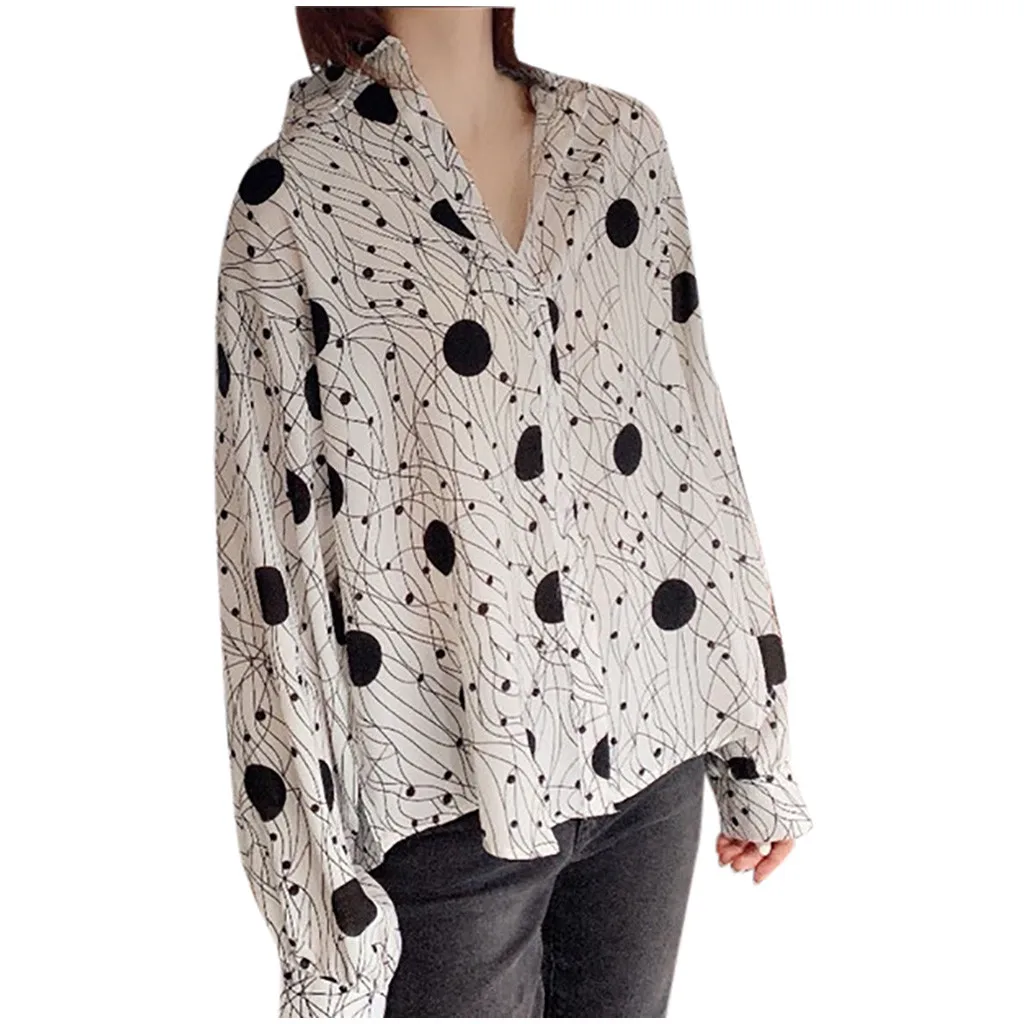 Особенности: модные топы с принтом, длинные рукава, топы с отложным воротником,Повседневные рубашки,.