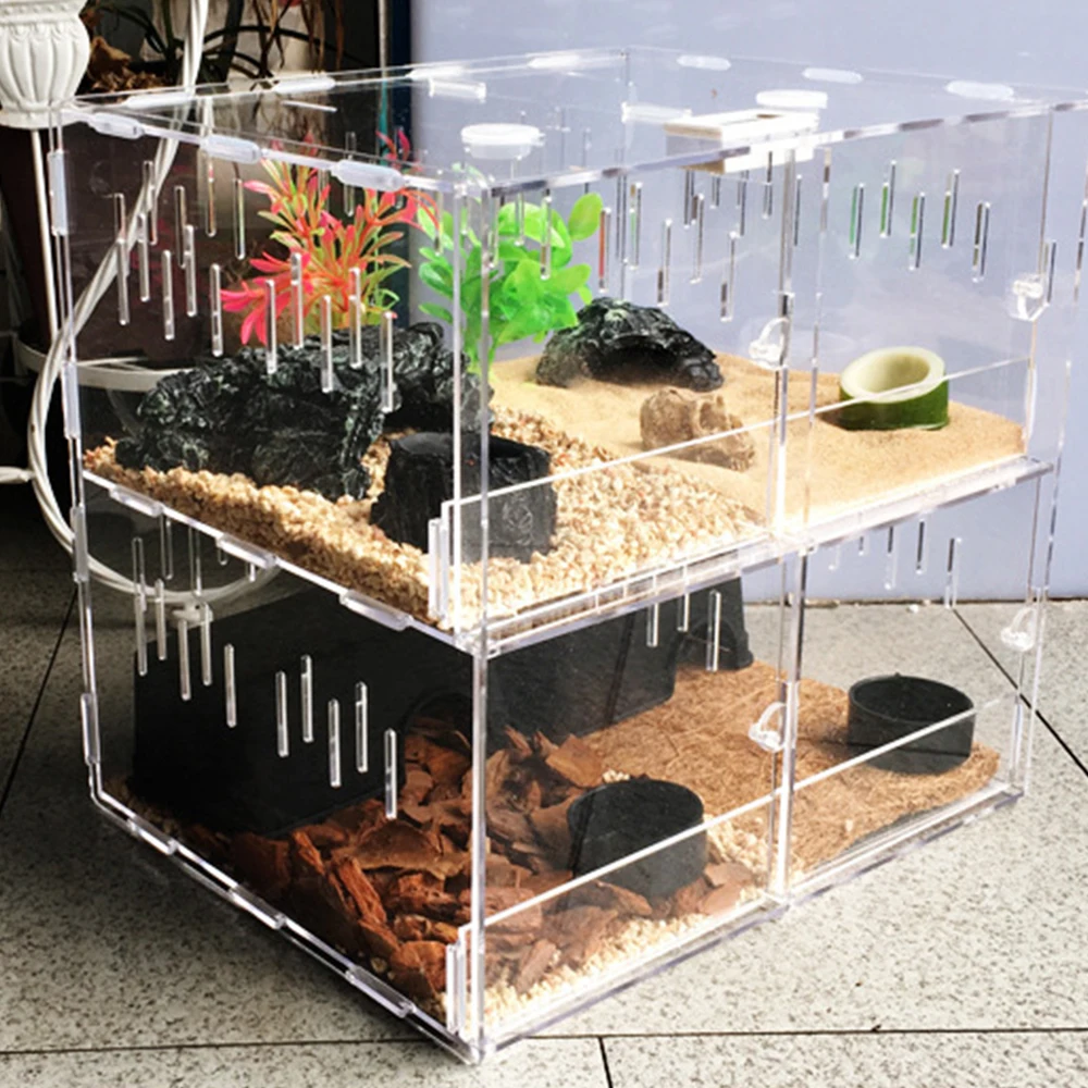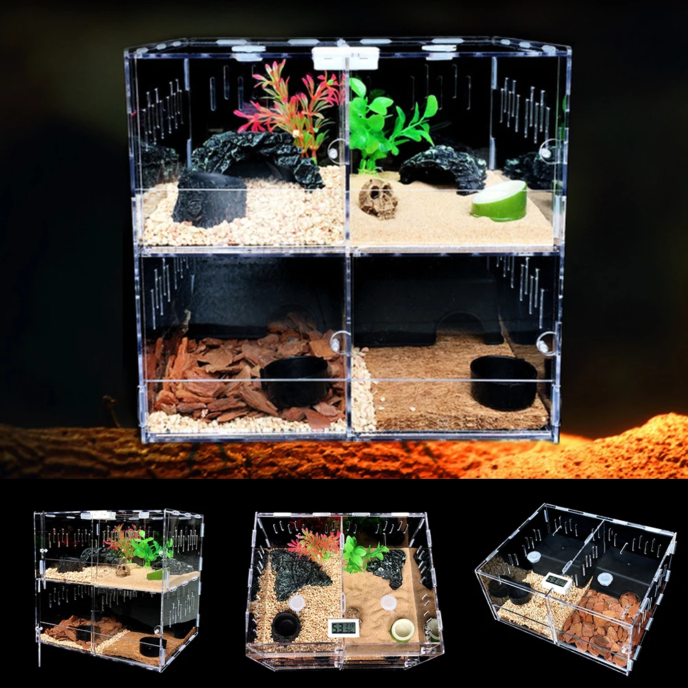 -Прочный акриловый материал с температурой/гигрометром и дышащими отверстиями, вы не беспокоитесь, что животное не может дышать.