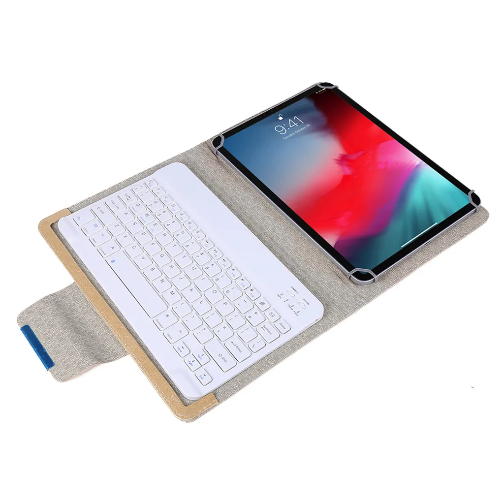 Совместимость:Совместимость общего назначения, 10 дюймов 10,2 дюймов 10,5 дюймов может быть общего назначения· Полностью Защищенный чехол:Изготовлено из кожи ТПУ, мягкая подкладка из микрофибры и жесткий чехол для задней панели, защищает планшет от ударов, пыли, повреждений и царапин.· С Нескользящая ткань с ромбовидным рисункомПротивоскользящий коврик на нижней части защитный чехол, регулируемая в трех скоростного уголСъемная клавиатура Bluetooth:Клавиатура с жестким корпусом, выполненная в стиле ноутбука, с высококачественным АБС-материалом. Пружинный механизм под каждой клавишей обеспечивает тактильный отклик при каждом штрихе, помогая вам напечатать быстрее и с меньше ошибок, чем на сенсорном экране.· Комфортный режим просмотра и ввода планшета:Чехол обеспечивает стабильный вертикальный угол и поставляется со съемной клавиатурой bluetooth, которая легко соединяется с планшетом для более быстрого и комфортного ввода.Посылка включает в себя: