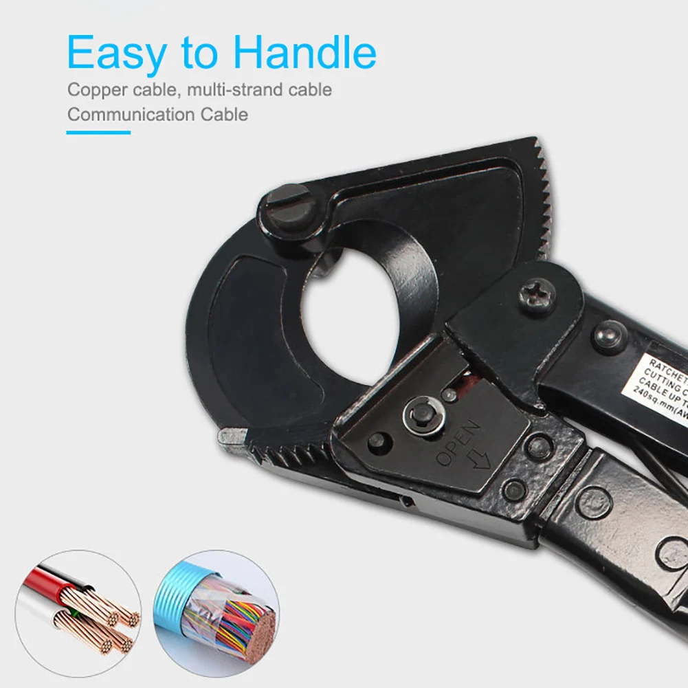 -Уникальное действие храповика удерживает кабель плотно и позволяет быстро-прямые порезы с минимальным усилием.