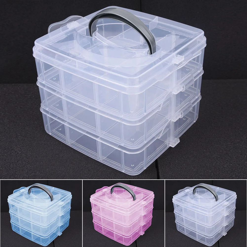 * Прозрачный пластиковый ящик для хранения ювелирных изделий из бисера, 3-слойный контейнер, органайзер, кейс, ремесло