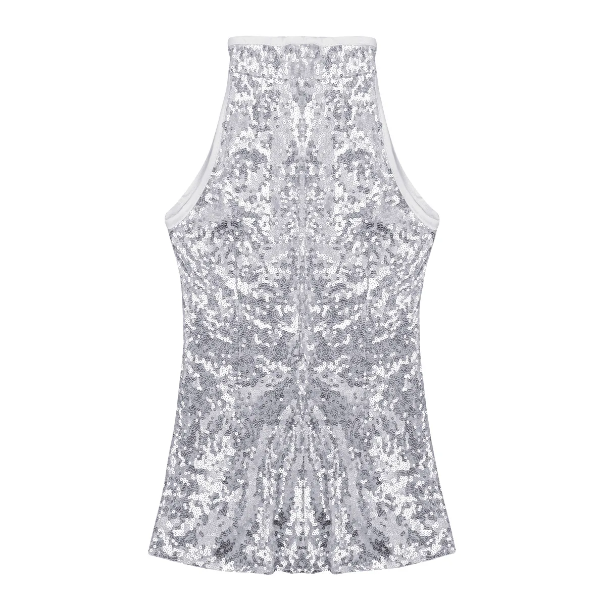 Жилет без рукавов в длинном стиле, вырез с застежкой на липучке, с блестящими блестками. Скрытая молния сзади.