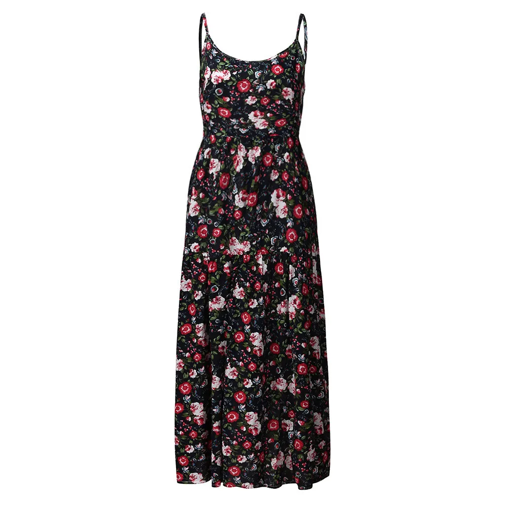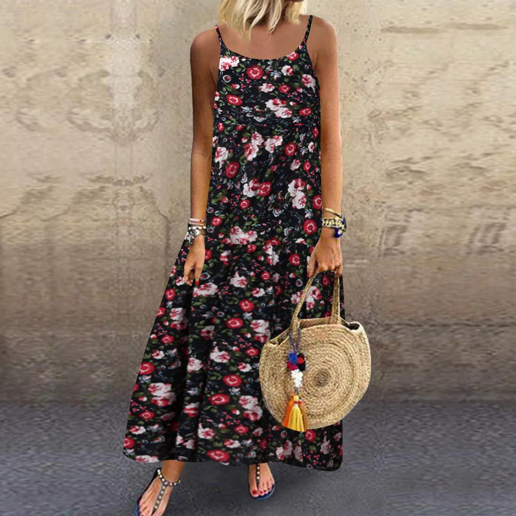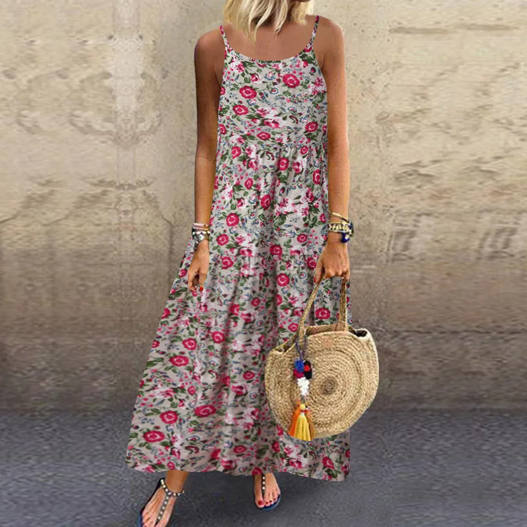 Женское повседневное свободное платье макси без рукавов в стиле бохо, льняное платье с принтом в стиле ретро, большие размеры