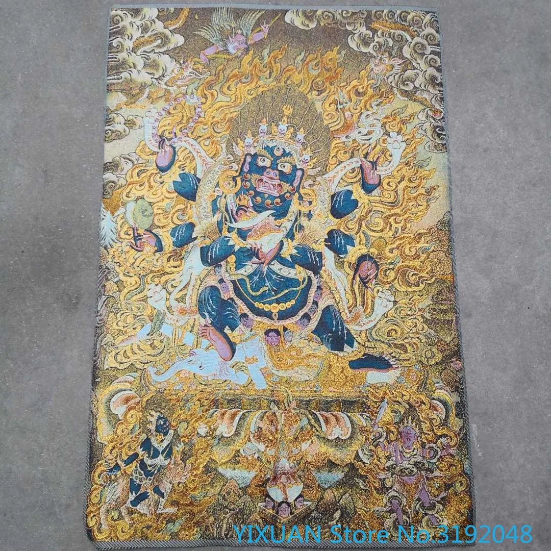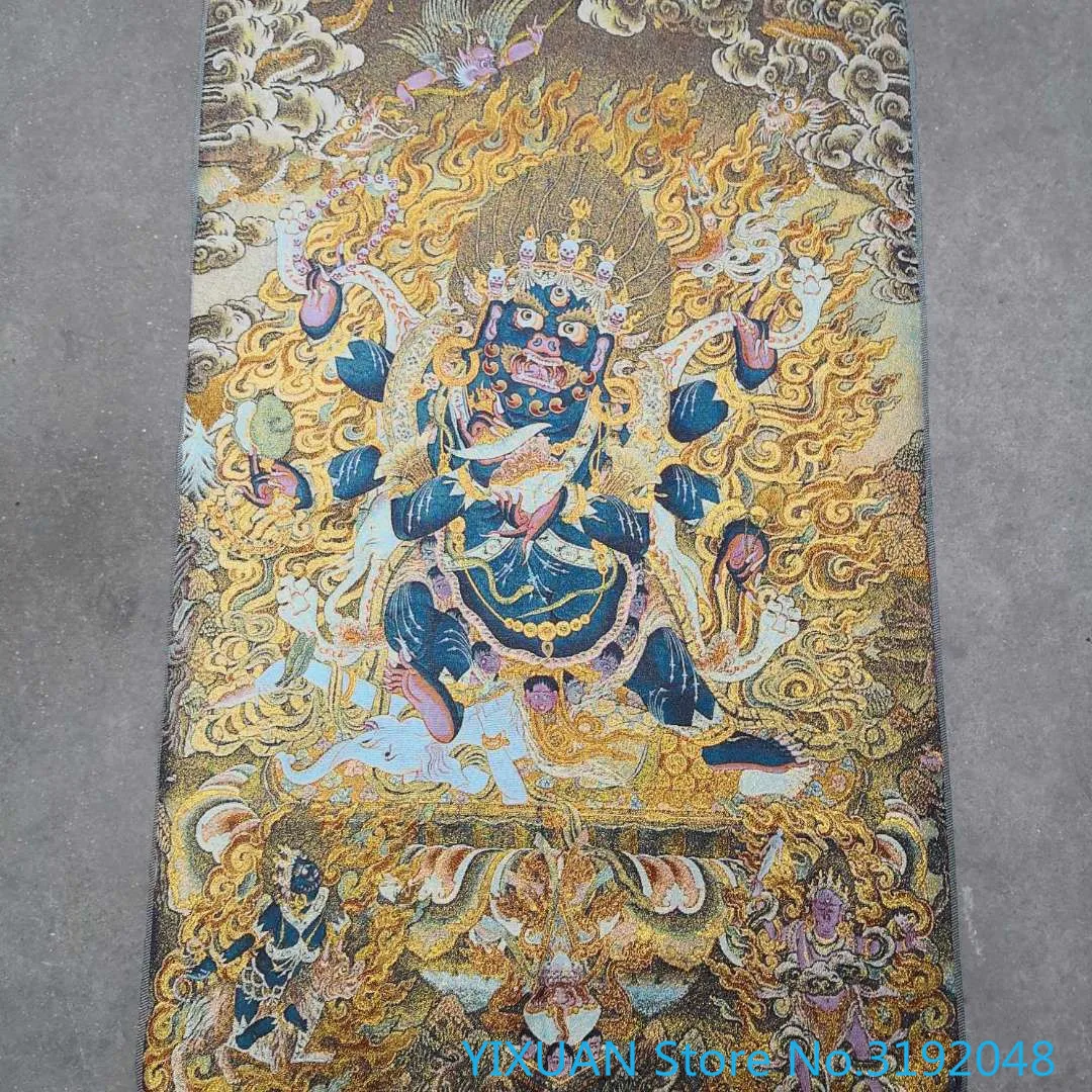 Guardian God immovable Buddha Pluto Nepal golden Thangka парча картина Религиозная Будда шелковая вышивка 60*90 см
