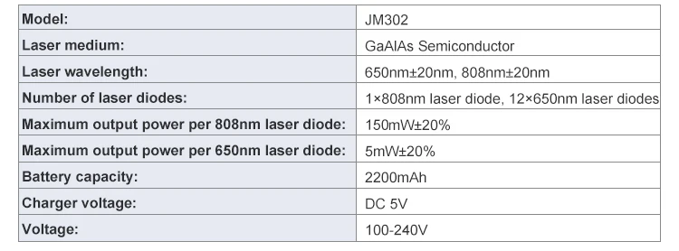 С лазерным выходом 210 МВт JM-302 является одним из самых мощных устройств индивидуальной холодной лазерной терапии на рынке. Он может доставить рекомендуемую дозировку Уолта в течение времени терапии 7-10 мин.