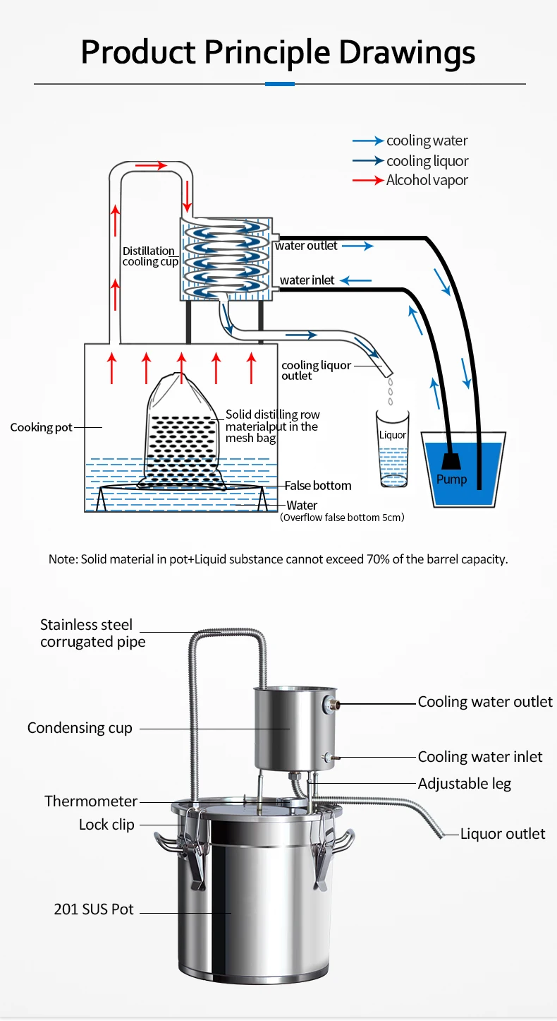 201 новая чашка для воды из нержавеющей стали, дистиллятор для домашнего пивоварения, маленькая машина для самогонного блеска, гидролата, вина, бренди, дистиллированная вода для пивоварения