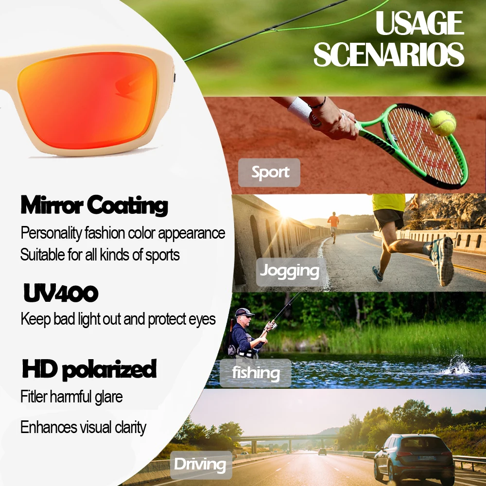 Защита UV 400: спортивные солнцезащитные очки с поляризованными линзами фильтруют блики, усиливают контрастность, уменьшают усталость и напряжение глаз, улучшают остроту зрения, обеспечивают безопасность, реалистичное восприятие, уменьшают блики и повышают четкость зрения