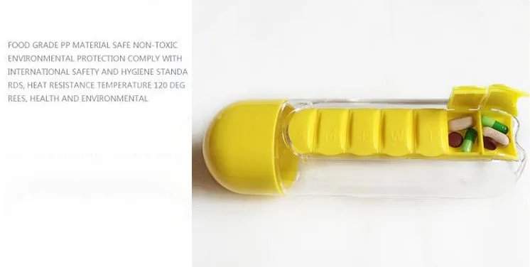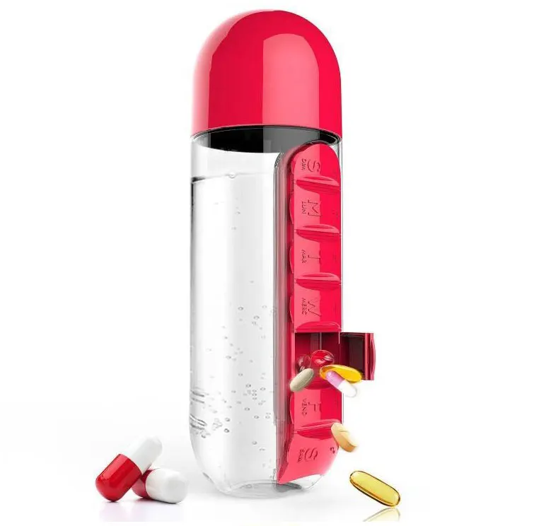 Комбинируйте свой ежедневный органайзер для таблеток с бутылкой для воды. Новый, гладкий «в стиле» органайзер для таблеток и бутылка для воды-это отличное изменение от вашей обычной ежедневной коробки для лекарств/таблеток. Асобу органайзер для таблеток бутылка для воды вмещает 20 унций вашего любимого напитка, плюс имеет встроенный органайзер для таблеток с отдельными отсеками на каждый день недели. Только ручная стирка. 23 унция Емкость Бутылка для воды со встроенным ежедневным органайзером для таблеток Органайзер для таблеток с семью отсеками на каждый день недели Отличный способ принять ваше лекарство во время на ходу Рекомендуется ручная стирка Ежедневное лекарство/коробка для таблеток