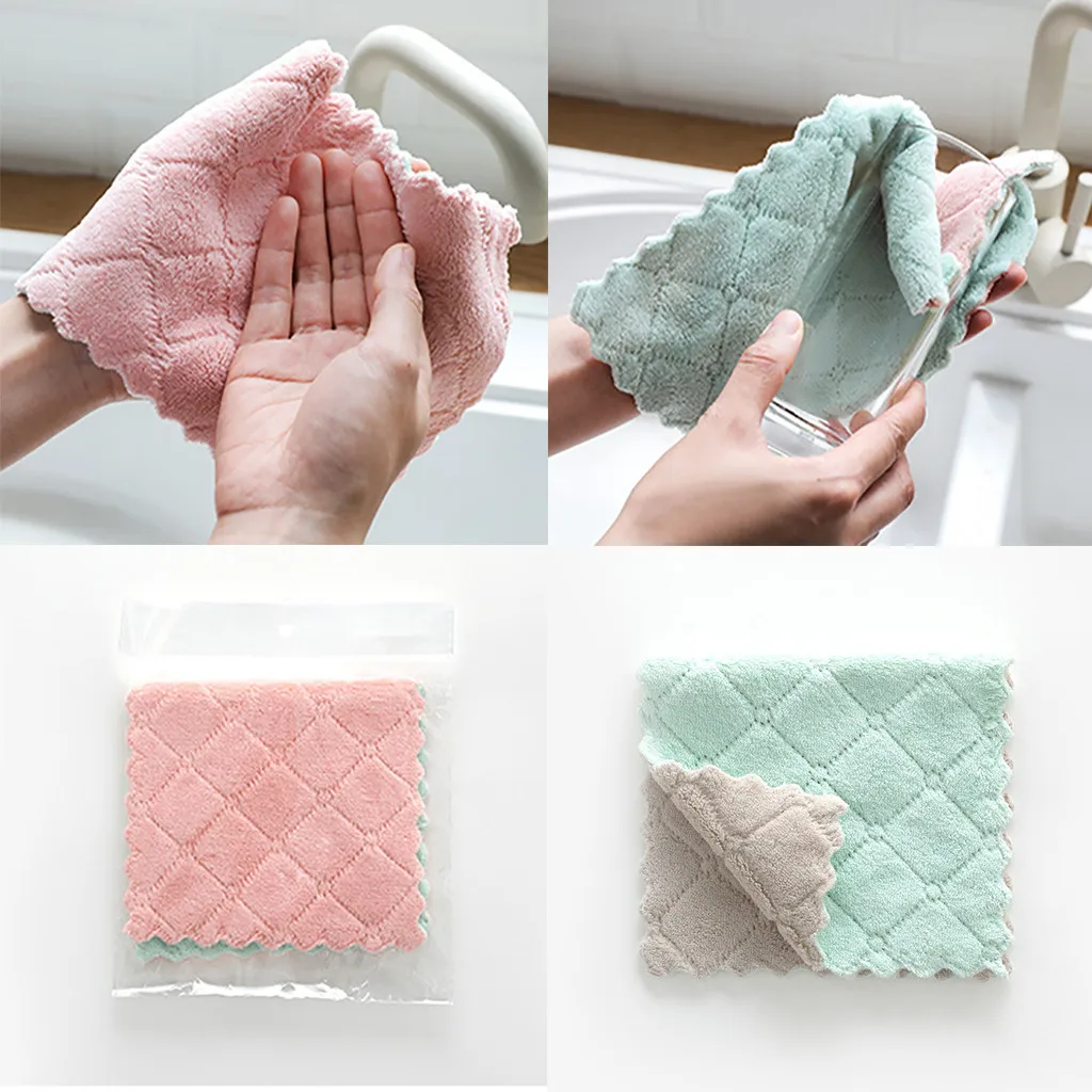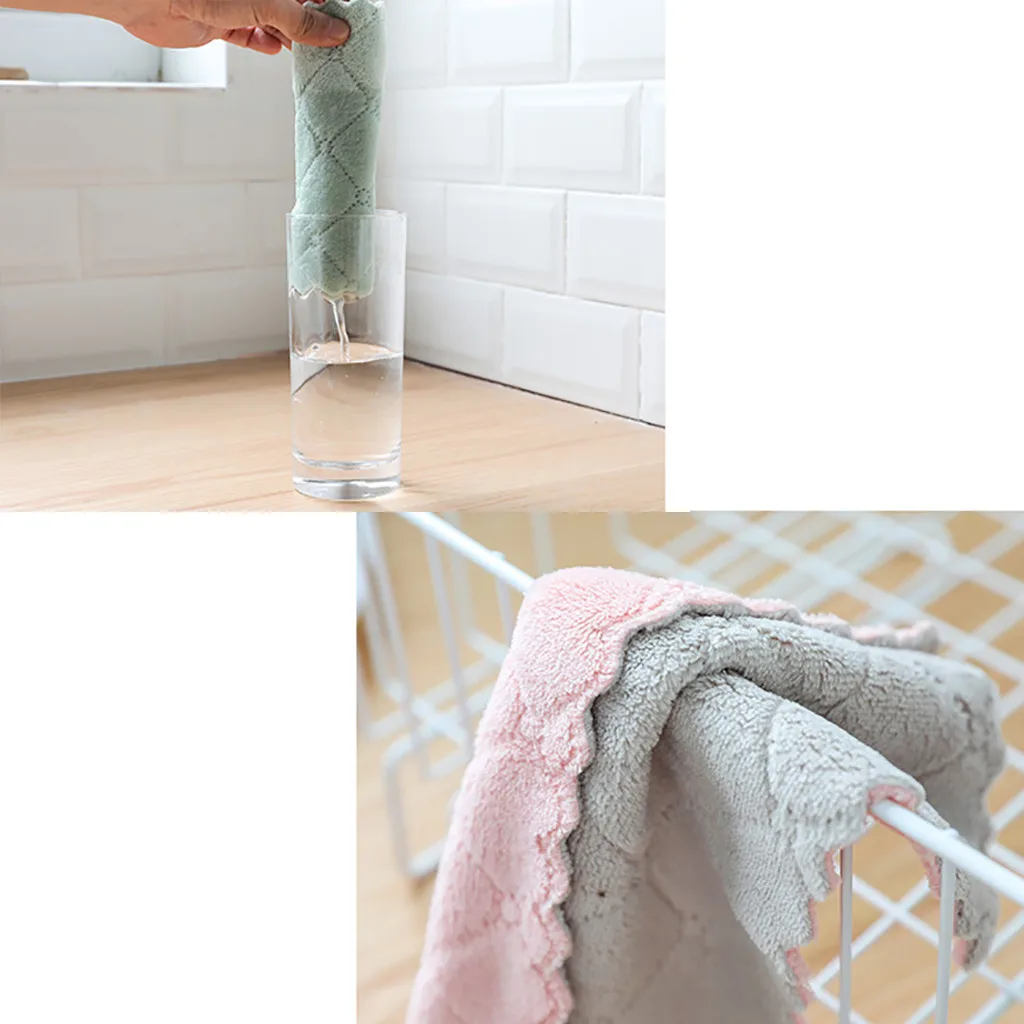 Кухонные полотенца для посуды Двусторонняя печать 27x16 коралловый флис абсорбирующий 5 шт